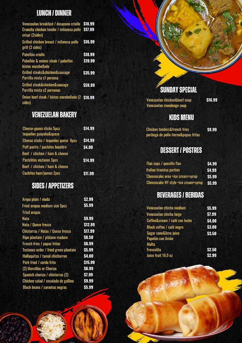 Enjoy a delicious Venezuelan soup or a tasty sancocho, the special dish on Sundays. Don’t miss this culinary delight! Disfruta de una deliciosa sopa venezolana o un sabroso sancocho, el plato especial de los domingos. ¡No te pierdas esta delicia culinaria!